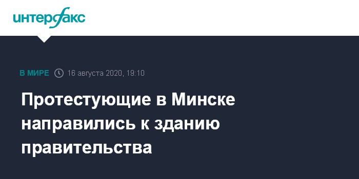 Москва. 16 августа. INTERFAX.RU - Часть протестующих от стелы "Минск - город-Герой" по улицам белорусской столицы направилась к площади Независимости.