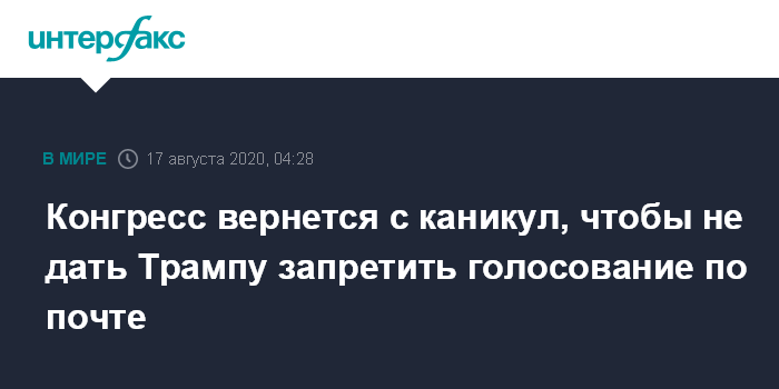 Ранее Пелоси заявляла: "Президент, его друзья и республиканцы в Конгрессе продолжают вести тотальную атаку на почтовое ведомство и его роль в обеспечении целостности выборов 2020 года, призывая граждан страны голосовать на президентских выборах по почте заранее, чтобы лишить республиканцев возможности не соглашаться с результатами выборов, мотивируя задержкой почтовых отправлений".