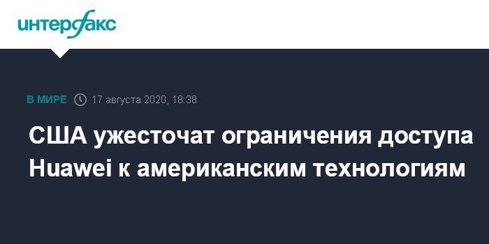 Москва. 17 августа. INTERFAX.RU - Министерство торговли США объявило о новых мерах для ограничения доступа китайской телекоммуникационной компании Huawei Technologies Co. к ключевым для ее работы компонентам.