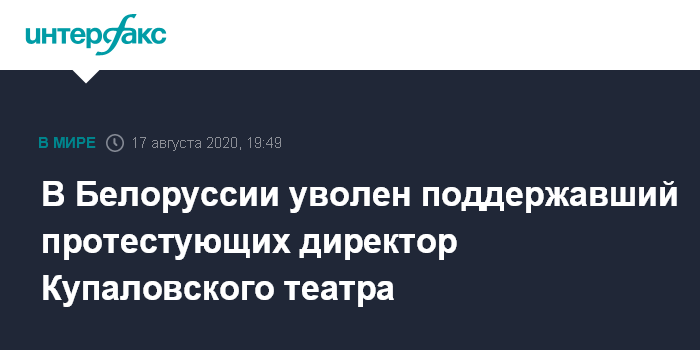 В Белоруссии уволен поддержавший протестующих директор Купаловского театра