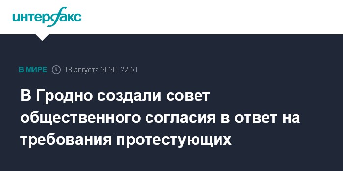 Москва. 18 августа. INTERFAX.RU - Гродненский горисполком опубликовал обращение к жителям Гродно, в котором сообщается о выполнении требований участников массовых митингов протеста, которые прошли в городе в последние дни.