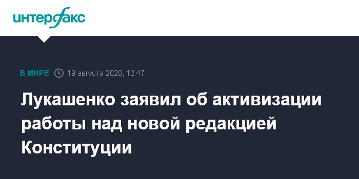Москва. 19 августа. INTERFAX.RU - Президент Белоруссии Александр Лукашенко призывает осуществлять все перемены в стране в рамках законодательства и правового поля, заявляет о готовности активизировать работу над новой редакцией Конституции.