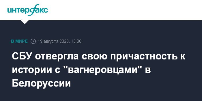 Москва. 19 августа. INTERFAX.RU - Служба безопасности Украины опровергла причастность к истории с приездом и задержанием в Белоруссии 33 россиян, которых в Минске назвали членами частной военной компании "Вагнера".