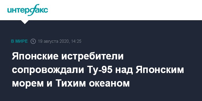 Москва. 19 августа. INTERFAX.RU - Российские стратегические ракетоносцы Ту-95 совершили плановый полет над нейтральными водами акватории Японского моря и северо-западной части Тихого океана, их сопровождали самолеты ВВС Японии, сообщает в среду Минобороны РФ.