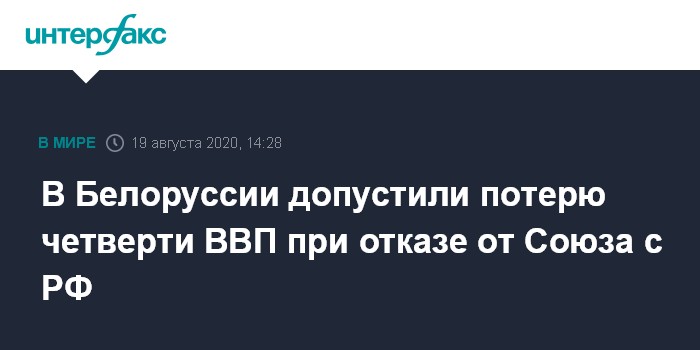"Предположим, что в стране начнут реализовываться те посылы, которые сформулировала Светлана Тихановская (экс-кандидат на выборах, которую оппозиция считает президентом - ИФ). Например: "Я считаю, что Беларуси не нужно Союзное государство". Предсказуемый итог – утрата позиций на российском рынке, одномоментный переход на мировые цены на нефть и газ. Учитывая, что кооперация с Россией формирует более 50% ВВП, примерно половину от этой величины сразу стоит списать с нашего баланса. Благосостояние просядет в той же пропорции, как минимум", - говорится в публикации Бельского на сайте госагентства БелТА.