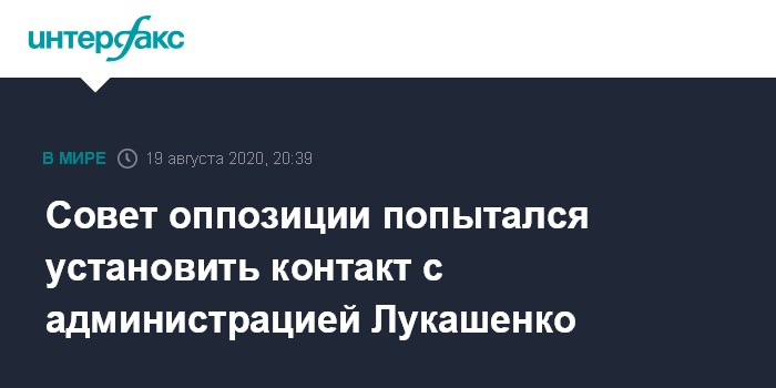 Москва. 19 августа. INTERFAX.RU - Созданный Координационный совет сторонников экс-кандидата в президенты Белоруссии Светланы Тихановской пытается установить контакты с администрацией действующего президента страны Александра Лукашенко, заявил журналистам член совета Павел Латушко.