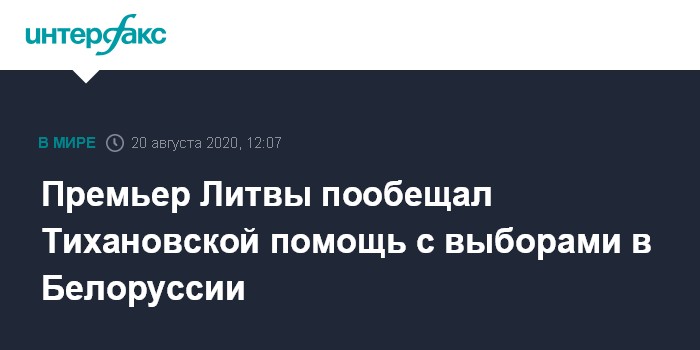 Премьер Литвы пообещал Тихановской помощь с выборами в Белоруссии