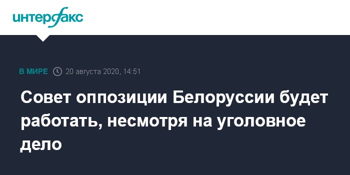 Москва. 20 августа. INTERFAX.RU - Координационный совет белорусской оппозиции выражает гражданскую позицию общества и продолжит работу, несмотря на уголовное дело, сообщил "Интерфаксу" член президиума совета Максим Знак.