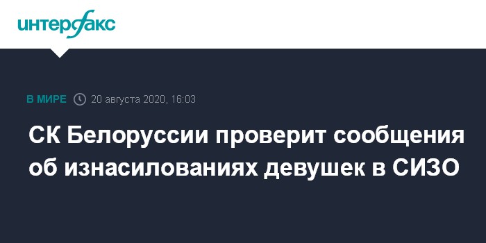 Москва. 20 августа. INTERFAX.RU - Следственный комитет Белоруссии проверяет информацию интернет-ресурсов об изнасилованиях женщин в местах временного содержания, сообщили в ведомстве в четверг.