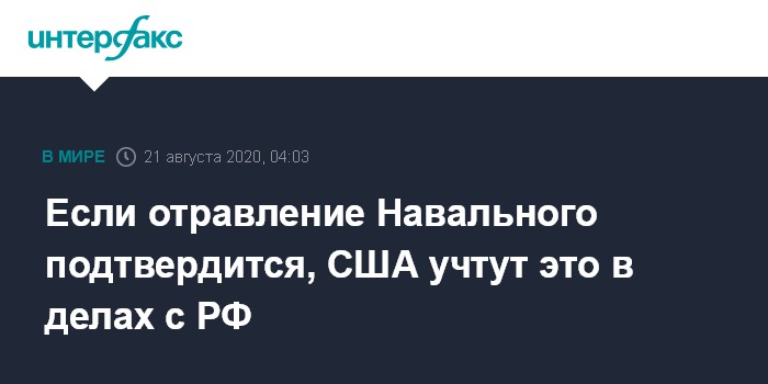 Если отравление Навального подтвердится, США учтут это в делах с РФ