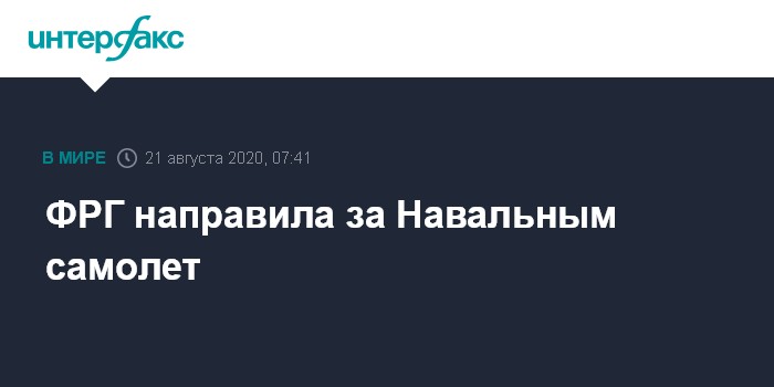 Москва. 21 августа. INTERFAX.RU - Германия в пятницу утром направила специальный медицинский самолет, оборудованный для транспортировки больных в коме, чтобы забрать российского оппозиционного политика Алексея Навального на лечение в Берлин, сообщило агентство ДПА.