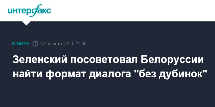 Москва. 22 августа. INTERFAX.RU - Обществу и власти в Белоруссии необходимо найти спокойный формат диалога друг с другом, поскольку кровопролитие является недопустимым, заявил президент Украины Владимир Зеленский.