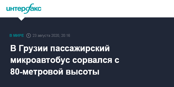 Москва. 23 августа. INTERFAX.RU - В Грузии пассажирский микроавтобус сорвался с 80-метровой высоты, в результате чего погибло 12 человек, сообщили вечером в МВД республики.