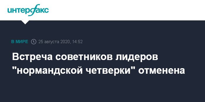 Москва. 25 августа. INTERFAX.RU - Запланированная на 28 августа встреча советников глав государств "нормандского формата" отменена из-за разногласий по итоговым документам, сообщил "Интерфаксу" источник, близкий к переговорам.
