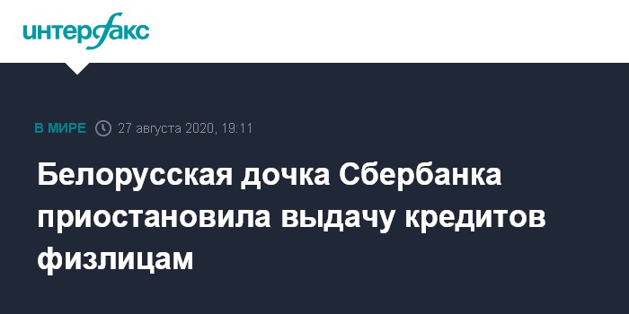 Москва. 27 августа. INTERFAX.RU - Белорусская дочка Сбербанка – БПС-Сбербанк временно прекращает выдачу кредитов физическим лицам.