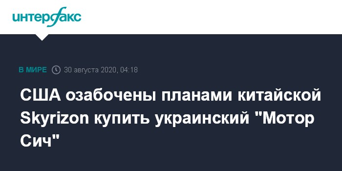 "Госсекретарь Помпео поднял вопрос об опасениях США по поводу пагубных инвестиций КНР в Украину, включая усилия Пекина по приобретению производителя двигателей "Мотор Сич", - говорится в распространенном сообщении Госдепа о состоявшейся еще 26 августа телефонной беседе Помпео с Зеленским.