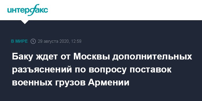 Баку ждет от Москвы дополнительных разъяснений по вопросу поставок военных грузов Армении