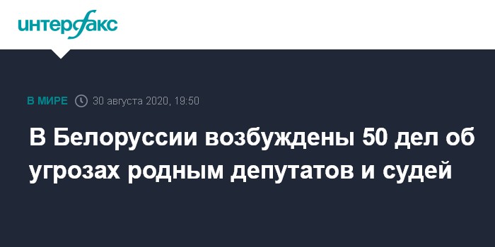 Москва. 30 августа. INTERFAX.RU - Следственный комитет Белоруссии с начала августа возбудил около 50 уголовных дел об угрозах расправой близким должностных лиц, сообщили в СК в воскресенье.