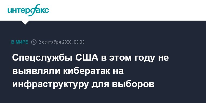Москва. 2 сентября. INTERFAX.RU - ФБР и Агентство по кибербезопасности и инфраструктурной безопасности США (CISA) во вторник опровергли сообщения о каких-либо атаках на избирательную инфраструктуру.