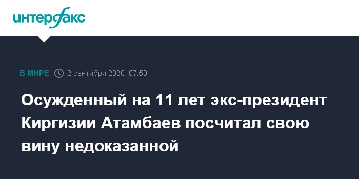 Москва. 2 сентября. INTERFAX.RU - Экс-президент Киргизии Алмазбек Атамбаев, осужденный на 11 лет и два месяца по делу о незаконном освобождении криминального авторитета Азиза Батукаева, считает свою вину недоказанной.