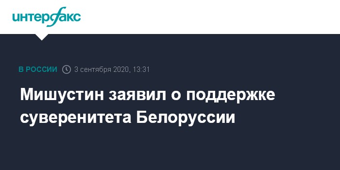 Москва. 3 сентября. INTERFAX.RU - Премьер министр РФ Михаил Мишустин заявил, что Россия поддерживает суверенитет и независимость Белоруссии.