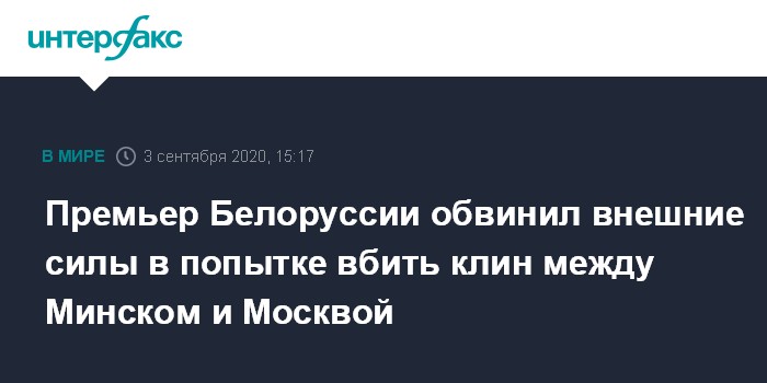Премьер Белоруссии обвинил внешние силы в попытке вбить клин между Минском и Москвой