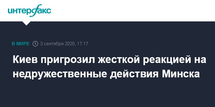 Москва. 3 сентября. INTERFAX.RU - Министр иностранных дел Украины Дмитрий Кулеба предупредил о готовности Киева к жестким мерам в отношении Белоруссии в случае недружественных действий со стороны Минска, в том числе к более радикальным шагам, чем отзыв украинского посла в Минске для консультаций.