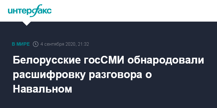 Москва. 4 сентября. INTERFAX.RU - Белорусские государственные СМИ обнародовали запись с фрагментом некой беседы, в которой речь идет, в частности, о ситуации с российским оппозиционером Алексеем Навальным.