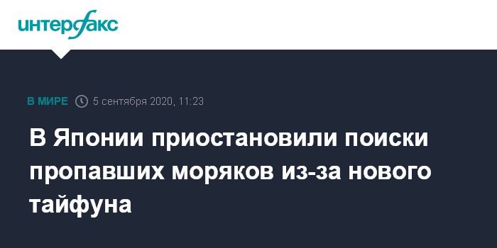 Москва. 5 сентября. INTERFAX.RU - Японские власти временно остановили поиски пропавших на этой неделе моряков и грузового судна, перевозившего крупный рогатый скот, из-за приближения нового мощного тайфуна, передают в субботу западные и местные СМИ.