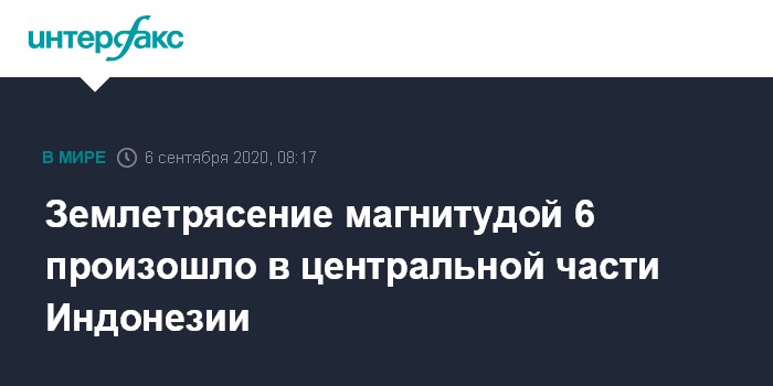 Землетрясение магнитудой 6 произошло в центральной части Индонезии