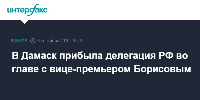 Москва. 6 сентября. INTERFAX.RU - Делегация правительства РФ во главе с вице-премьером Юрием Борисовым прибыла в Сирию через международный аэропорт Дамаска, передает сирийское агентство САНА.