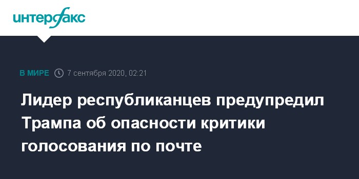 Лидер республиканцев предупредил Трампа об опасности критики голосования по почте
