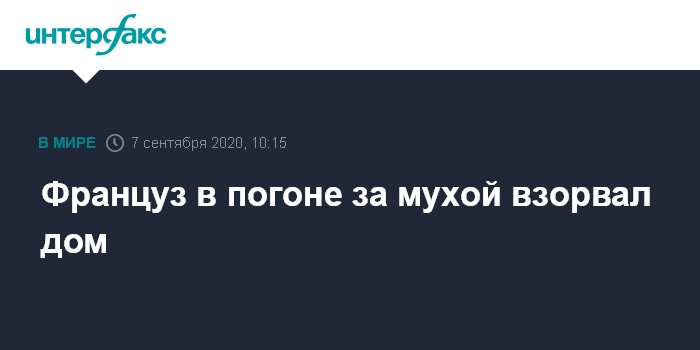 Москва. 7 сентября. INTERFAX.RU - В департаменте Дордонь пожилой мужчина устроил взрыв в собственном доме, пытаясь убить муху электрической мухобойкой, пишет Sud-Ouest.