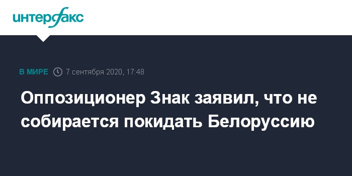 Москва. 7 сентября. INTERFAX.RU - Последний член президиума Координационного совета белорусской оппозиции, который пока не подвергся преследованиям, Максим Знак не намерен покидать страну.