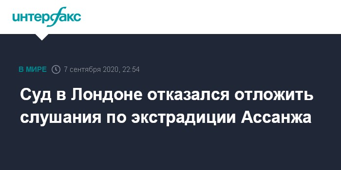 Запрос на отсрочку рассмотрения дела до января 2021 года поступил в первый день слушаний в лондонском суде, где решается вопрос о том, будет ли удовлетворен запрос США об экстрадиции Ассанажа для судебного разбирательства по обвинению в шпионаже.