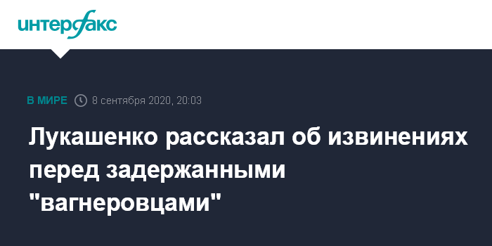 Москва. 8 сентября. INTERFAX.RU - Президент Белоруссии Александр Лукашенко в интервью российским СМИ рассказал, что задержанным в Минске россиянам были принесены извинения, прежде чем они вернулись на родину.