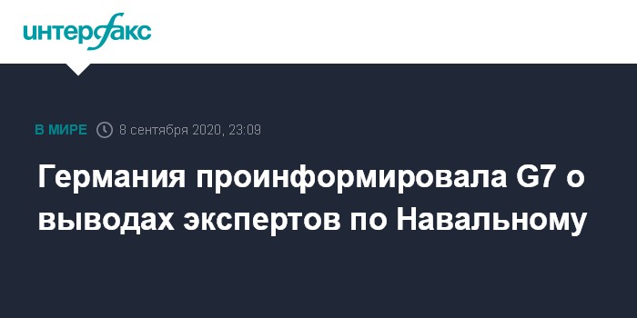 Москва. 8 сентября. INTERFAX.RU - Германия проинформировала остальных членов "группы семи" относительно результатов проведенного специалистами исследования состояния российского оппозиционера Алексея Навального, которое провели немецкие врачи, говорится в заявлении глав МИД стран G7.