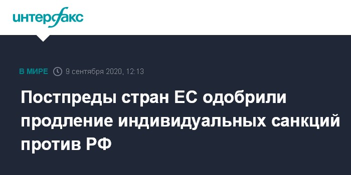 Постпреды стран ЕС одобрили продление индивидуальных санкций против РФ
