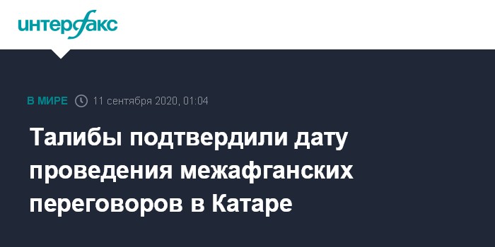 По словам представителя талибов, которые приводит телеканал Tolo News, "первая встреча в рамках межафганского диалога намечена на 12 сентября в Катаре".