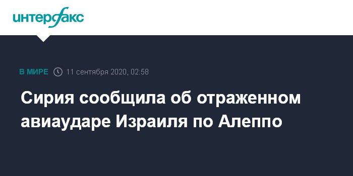 Сирия сообщила об отраженном авиаударе Израиля по Алеппо