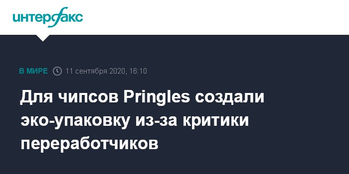 Москва. 11 сентября. INTERFAX.RU - Для чипсов Pringles разработана более простая упаковка из-за критики Ассоциации переработчиков (Recycling Association), назвавших ее "кошмаром вторичной переработки". Об этом в пятницу сообщает BBC News.