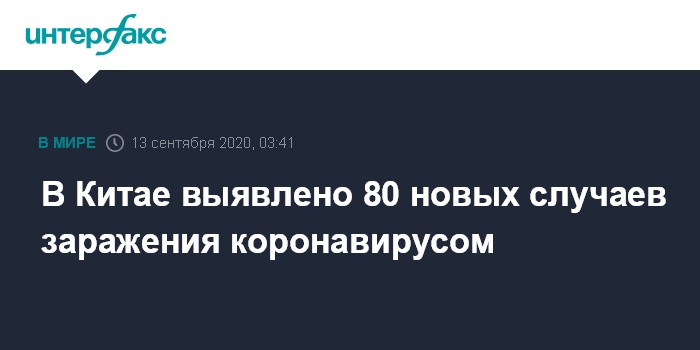 Москва. 13 сентября. INTERFAX.RU - За истекшие сутки в Китае зафиксированы 80 новых инфицированных COVID-19: 10 больных в активной форме и 70 бессимптомных носителей, все случаи "импортированы", сообщил Госкомздрав КНР на своем официальном сайте.