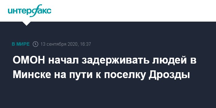 Москва. 13 сентября. INTERFAX.RU - Сотрудники силовых структур в Минске препятствуют движению участников несанкционированной акции в Минске к элитному коттеджному поселку Дрозды, где проживает руководство страны.