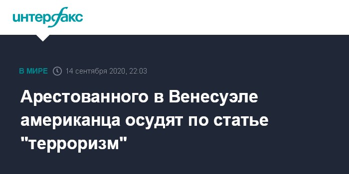 Москва. 14 сентября. INTERFAX.RU - Арестованный в Венесуэле человек, которого венесуэльские власти назвали "американским шпионом", будет осужден по статье "терроризм", сообщил в понедельник в телеэфире главный прокурор Венесуэлы Тарек Вильям Сааб.