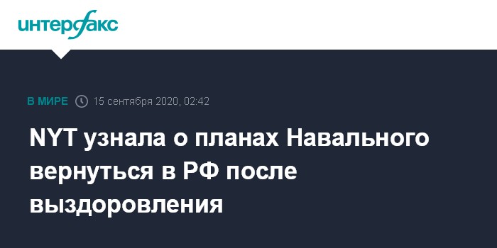NYT узнала о планах Навального вернуться в РФ после выздоровления
