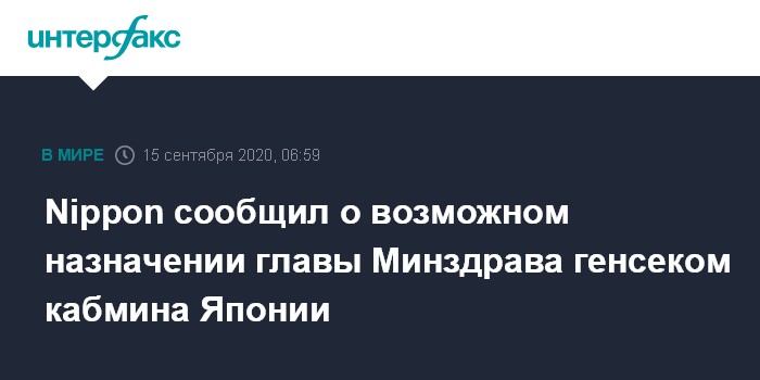 Nippon сообщил о возможном назначении главы Минздрава генсеком кабмина Японии