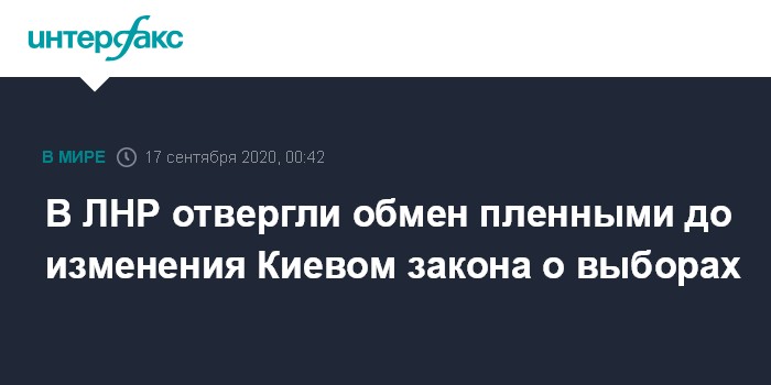 Москва. 17 сентября. INTERFAX.RU - Постановление Верховной рады Украины о местных выборах, согласно которому они не будут проводиться на неподконтрольный Киеву территории Донбасса, не позволяет достигнуть договоренности об обмене пленными, заявила представитель самопровозглашенной Луганской народной республики (ЛНР) в гуманитарной подгруппе минской Контактной группы Ольга Кобцева.
