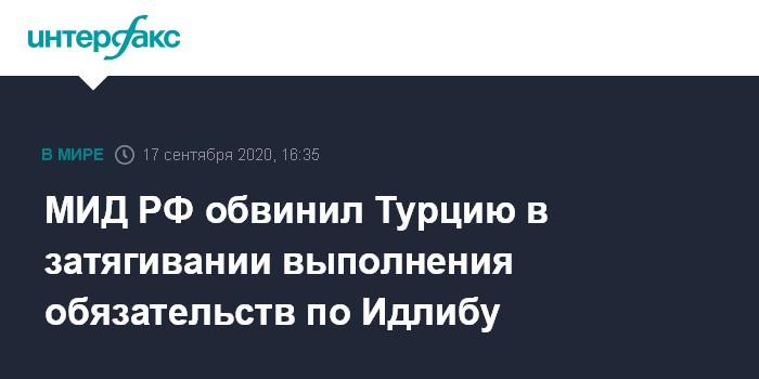 МИД РФ обвинил Турцию в затягивании выполнения обязательств по Идлибу