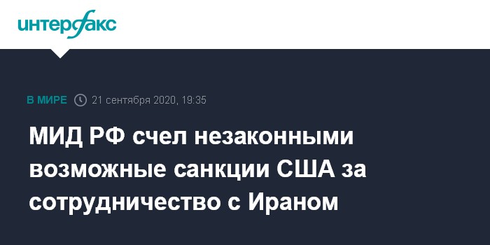 Москва. 21 сентября. INTERFAX.RU - В Москве будут считать незаконными планируемые санкции США за сотрудничество с Ираном, заявил в понедельник глава МИД РФ Сергей Лавров.
