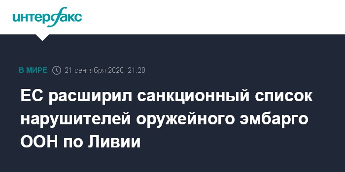 "Сегодня был утвержден (санкционный) список, который мы обновили. Два лица, причастные к нарушению прав человека, и три компании, вовлеченные в нарушение эмбарго ООН, были внесены в список", - сообщил на пресс-конференции в Брюсселе высокий представитель Евросоюза по иностранным делам Жозеп Боррель после заседания Совета ЕС на уровне глав МИД.
